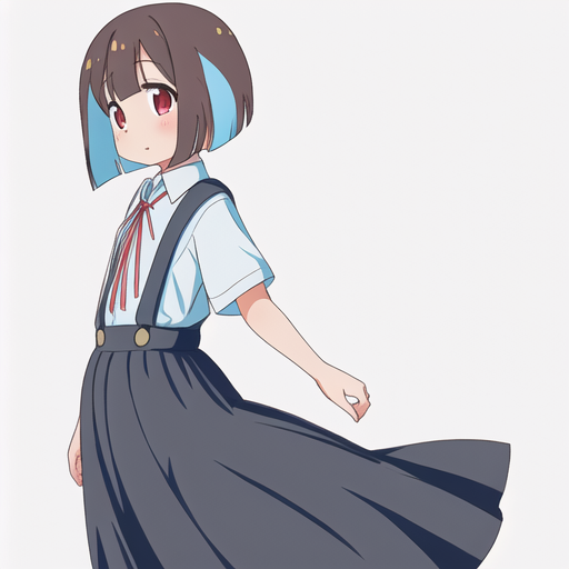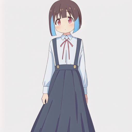 アニメの薄水色のブラウスを再現したくて色々頑張ってはいるものの、なかなか適用されない… ただこんな感じの絵柄が安定して出てくるようになったのはでかい。