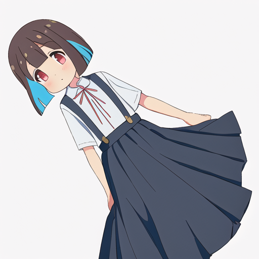 (((best quality))), one girl, huzuki_momiji, school uniform, wear_blue_blouse, long skirt, hanging_skirt, wide_suspenders, bob cut, young, flat_chest, small_breasts, red_ribbon_string, full_body_shot(((Blurry Eyes))), (((bad anatomy))), ((disabled body)), ((deformed body)), ((missing finger)), ((mutant hands)), ((more than five fingers)), badly drawn hands, lack of detail, (((Low resolution))), ((bad hands)), ((text)), error, cropped, low-quality image, normal quality, jpeg artifacts, signature, watermark, username, blurry, lack of details in the image, big_breasts, breasts, cut_off, wear_glassesモデルがあった